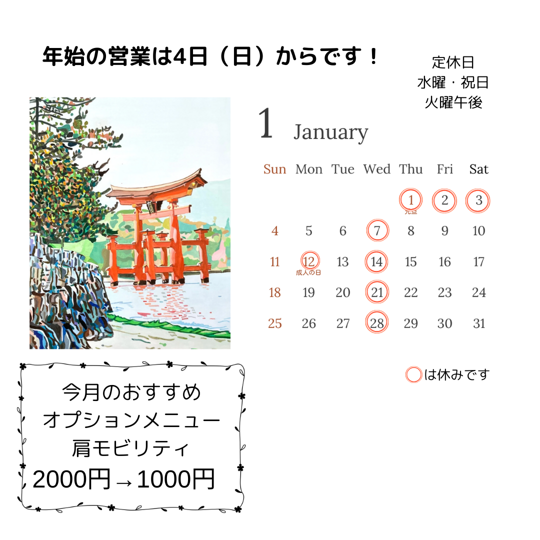2026年1月の営業日